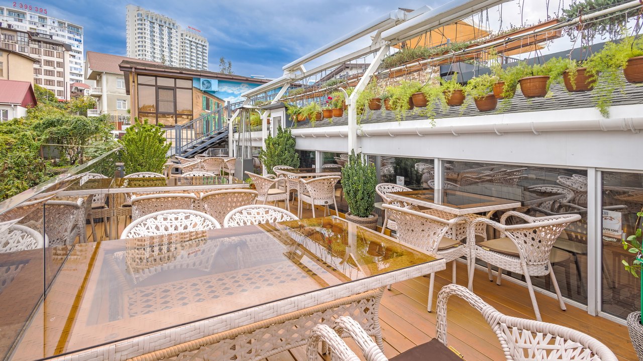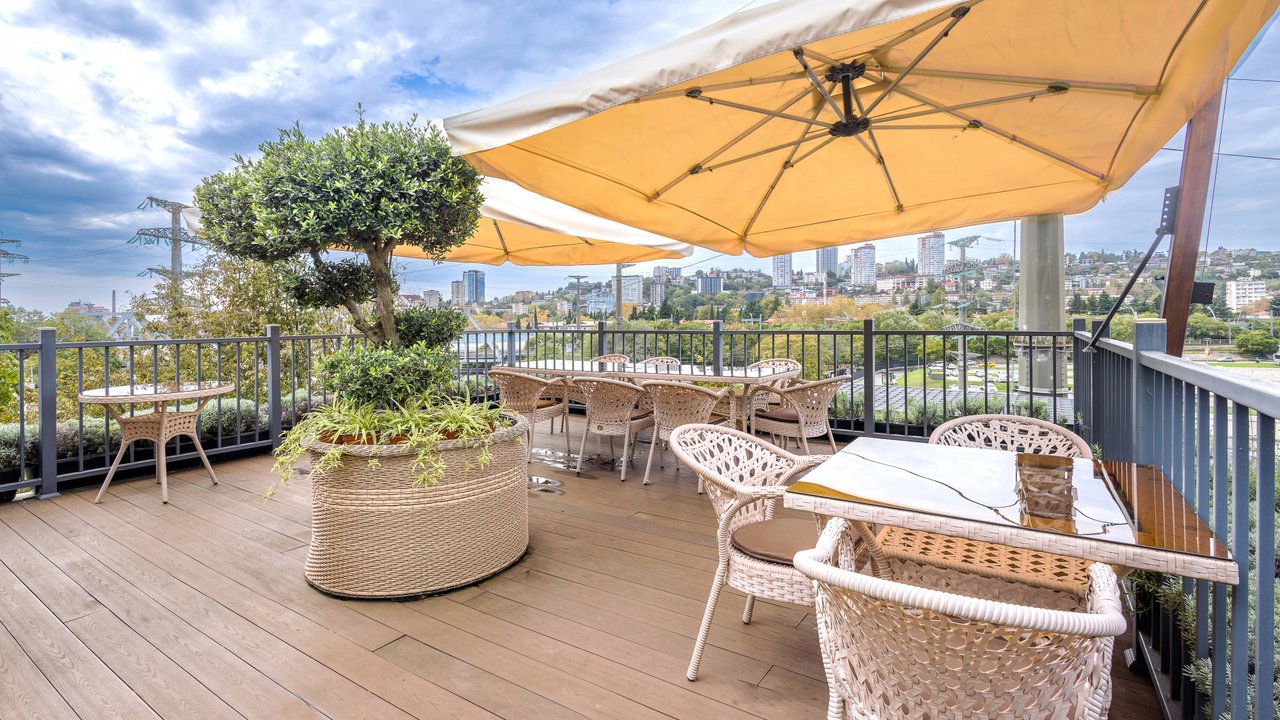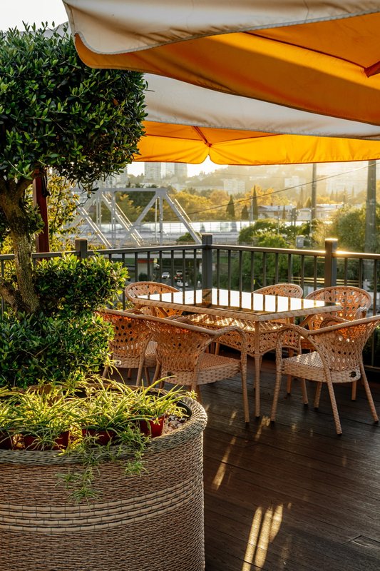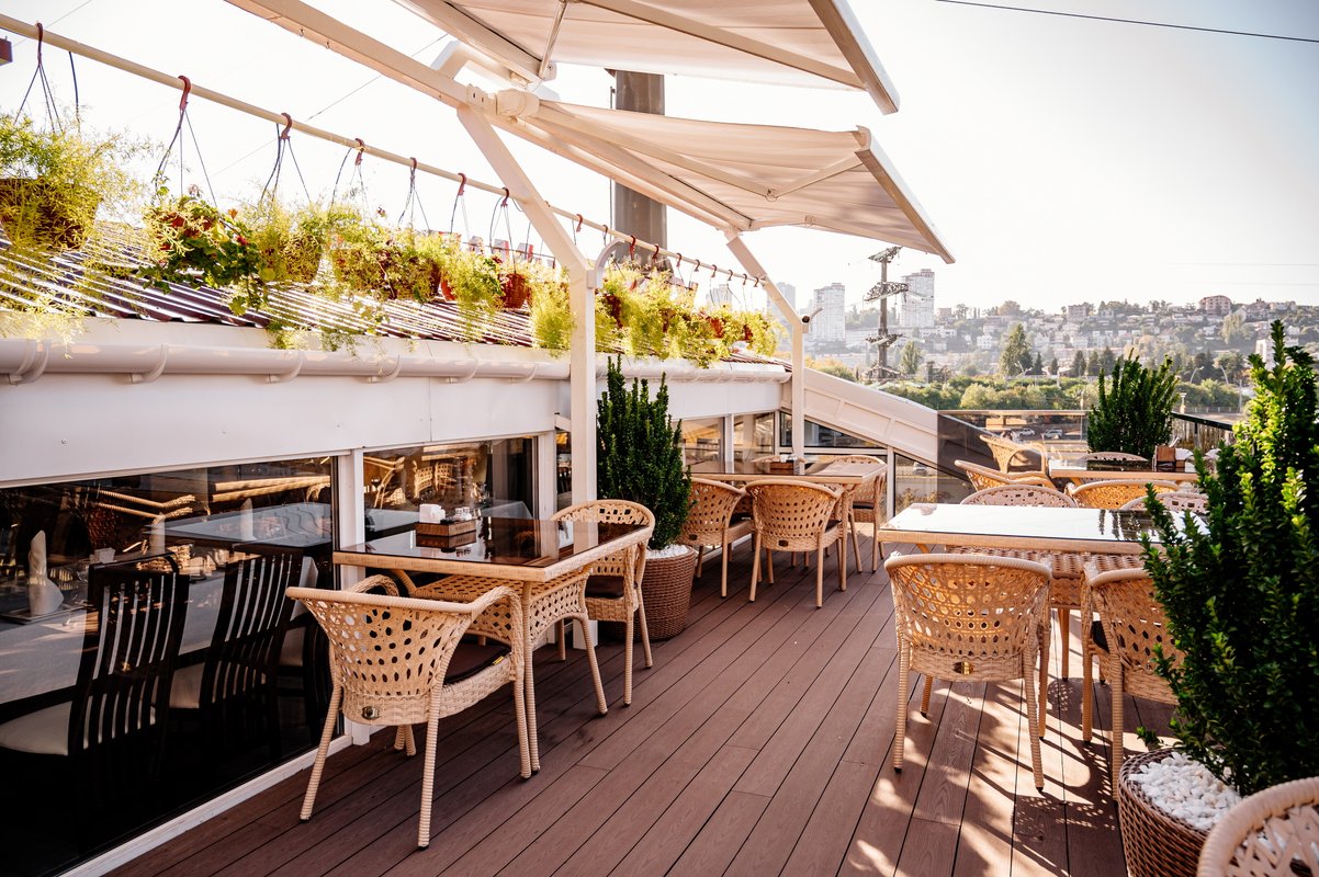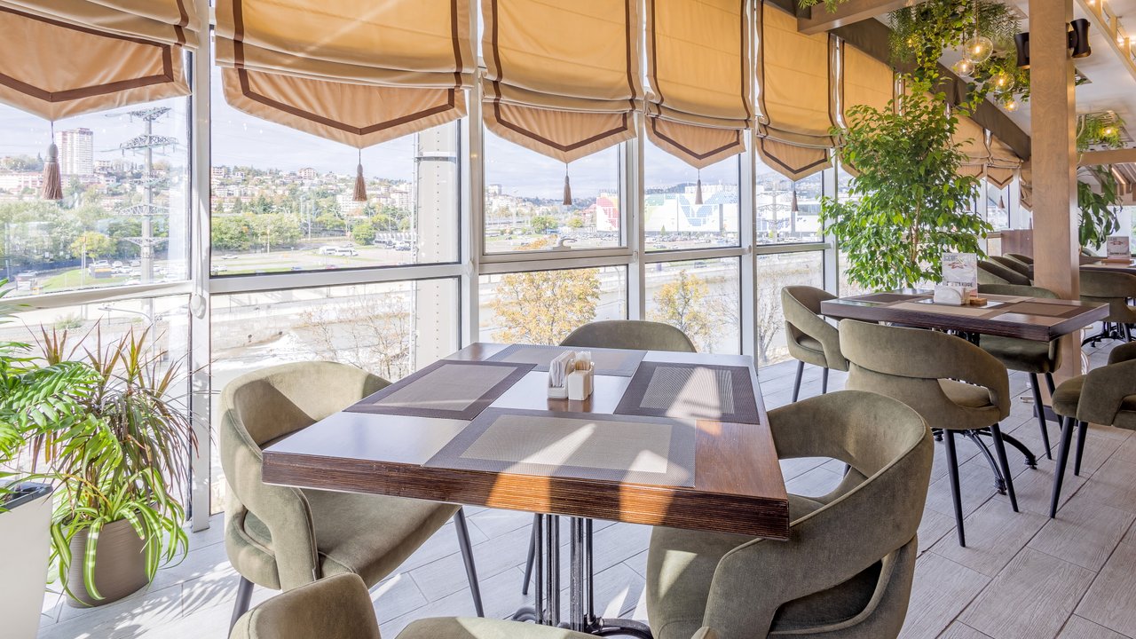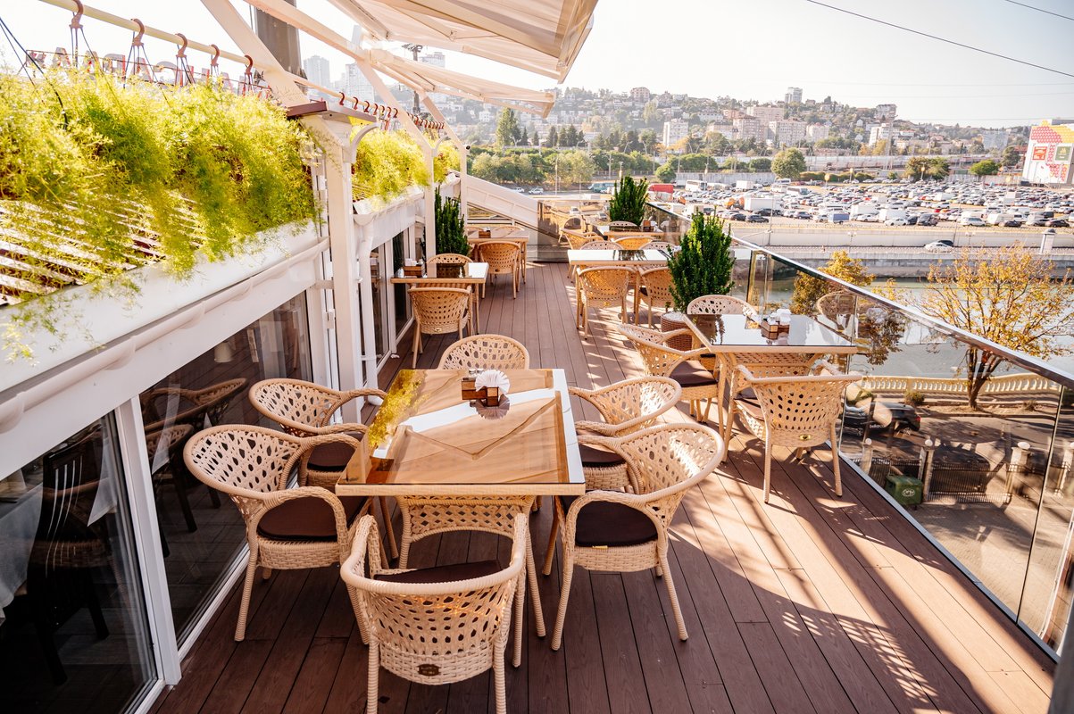 Наш ресторан расположен недалеко от воды и открывает потрясающий панорамный обзор! Он славится не только своей кухней и баром - мы порадуем вас дизайном снаружи и внутри. Если вы цените красоту вокруг, приходите в наш ресторан. Когда за окном тепло, лучше чаще находиться в открытом пространстве. И не только чтобы погулять, но и встретиться с близкими и вкусно поесть. Специально для таких случаев у кафе Мансарда имеется терраса с приятным видом.