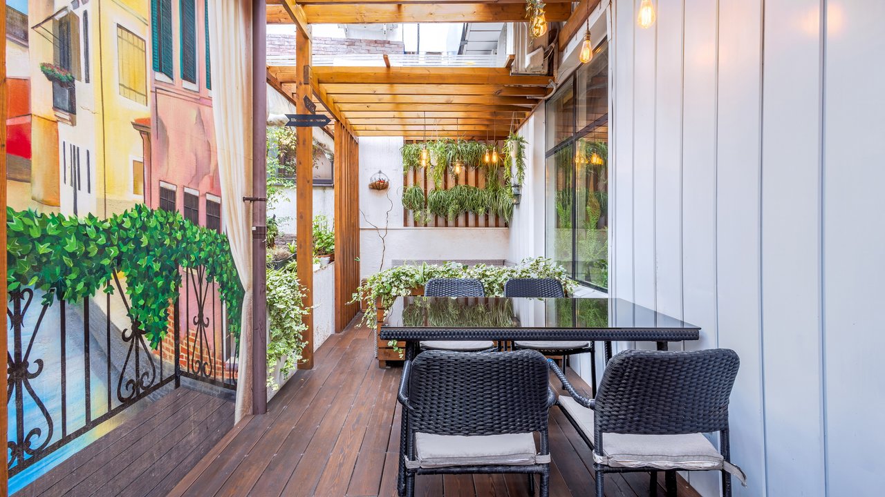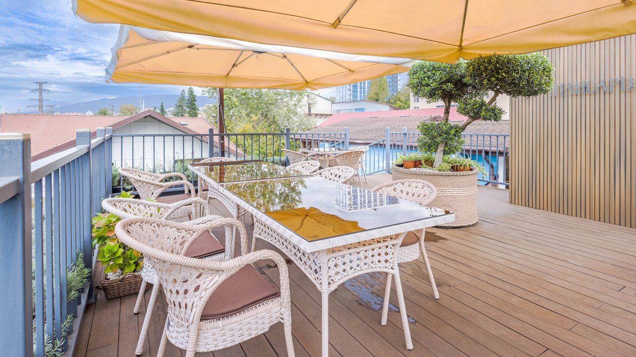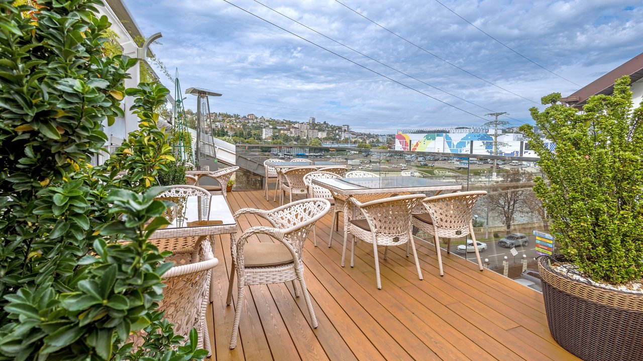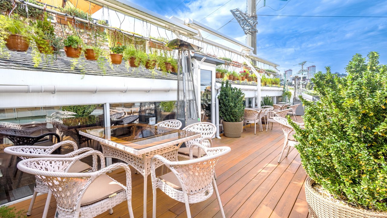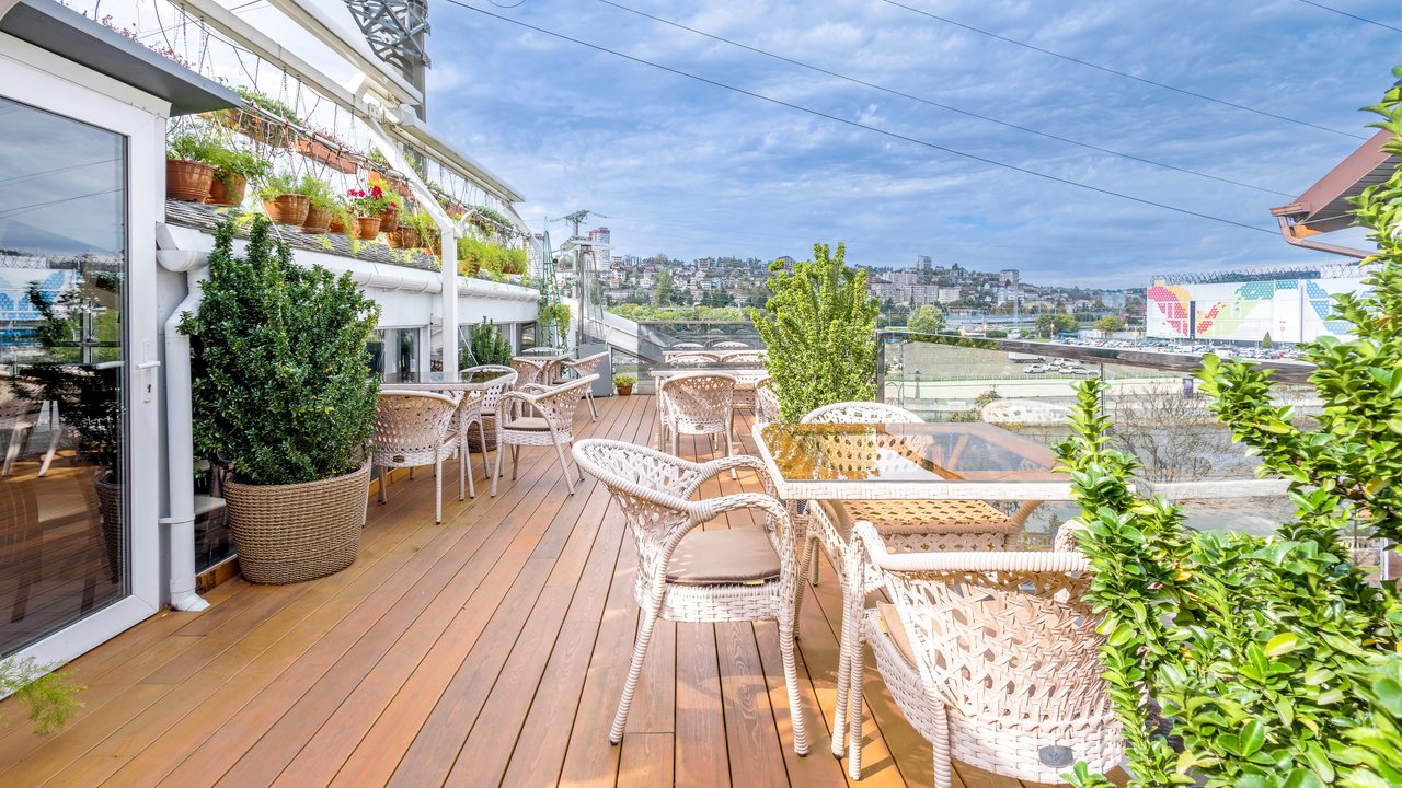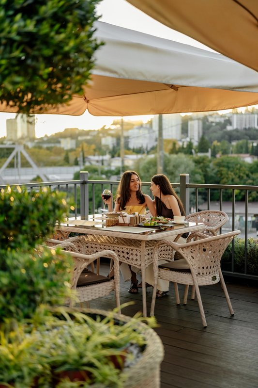 Наш ресторан расположен недалеко от воды и открывает потрясающий панорамный обзор! Он славится не только своей кухней и баром - мы порадуем вас дизайном снаружи и внутри. Если вы цените красоту вокруг, приходите в наш ресторан. Когда за окном тепло, лучше чаще находиться в открытом пространстве. И не только чтобы погулять, но и встретиться с близкими и вкусно поесть. Специально для таких случаев у кафе Мансарда имеется терраса с приятным видом.